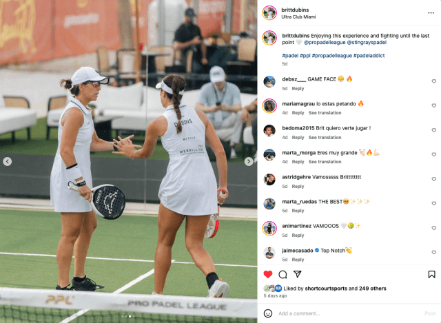 She is extremely supportive of her teammates and shows great discipline around the various requirements of high-level performance. Watching Brittany and Lucia compete together and win, as well, was thrilling for the future of American padel. We hope this skyrockets her confidence and inspires the next generation of American padel players.”